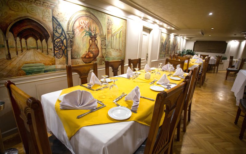 تضم الباخرة مطعمًا فاخرًا يقدم أشهى الأطباق الشرقية والعالمية بنظام البوفيه المفتوح، إضافة إلى بار واستراحة تطل على النيل لتوفير أجواء مريحة وممتعة للضيوف.