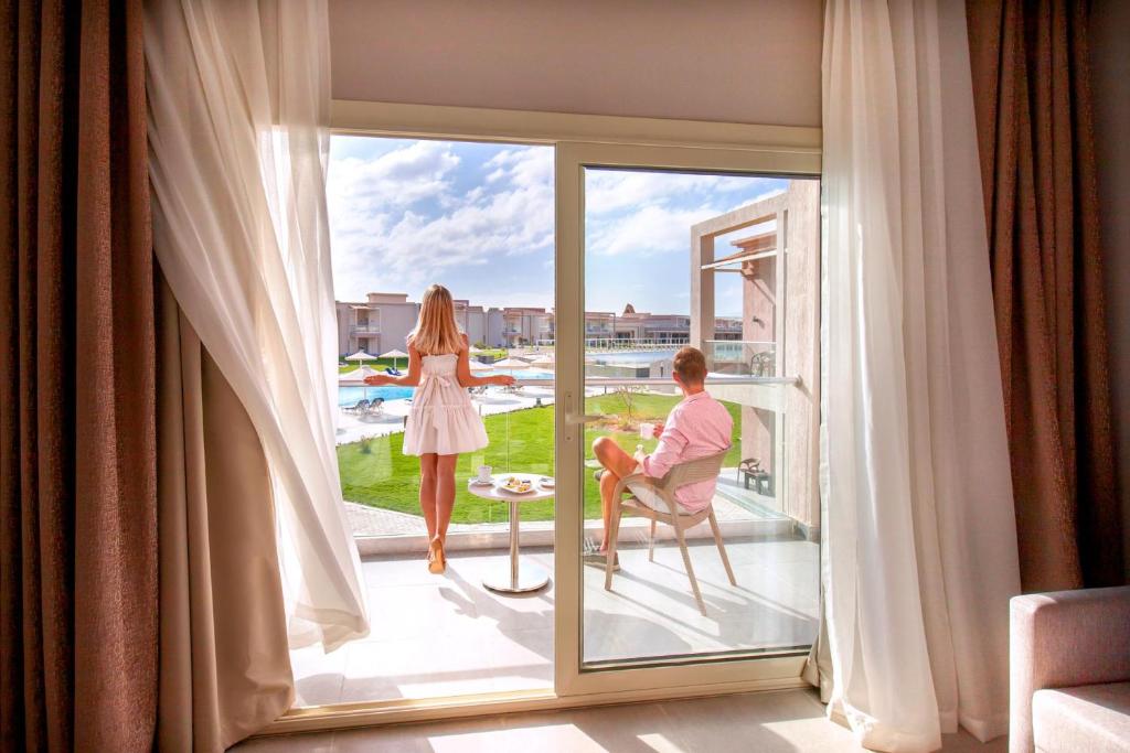 يضم الفندق مجموعة من الغرف والأجنحة الفاخرة التي تتميز بالاتساع والديكور الأنيق والإطلالات الرائعة على البحر أو الحدائق أو المسابح. جميع الغرف مجهزة بأحدث وسائل الراحة مثل التكييف، التلفاز، وخدمة الغرف المتاحة على مدار اليوم، لتوفير إقامة متكاملة للنزلاء.