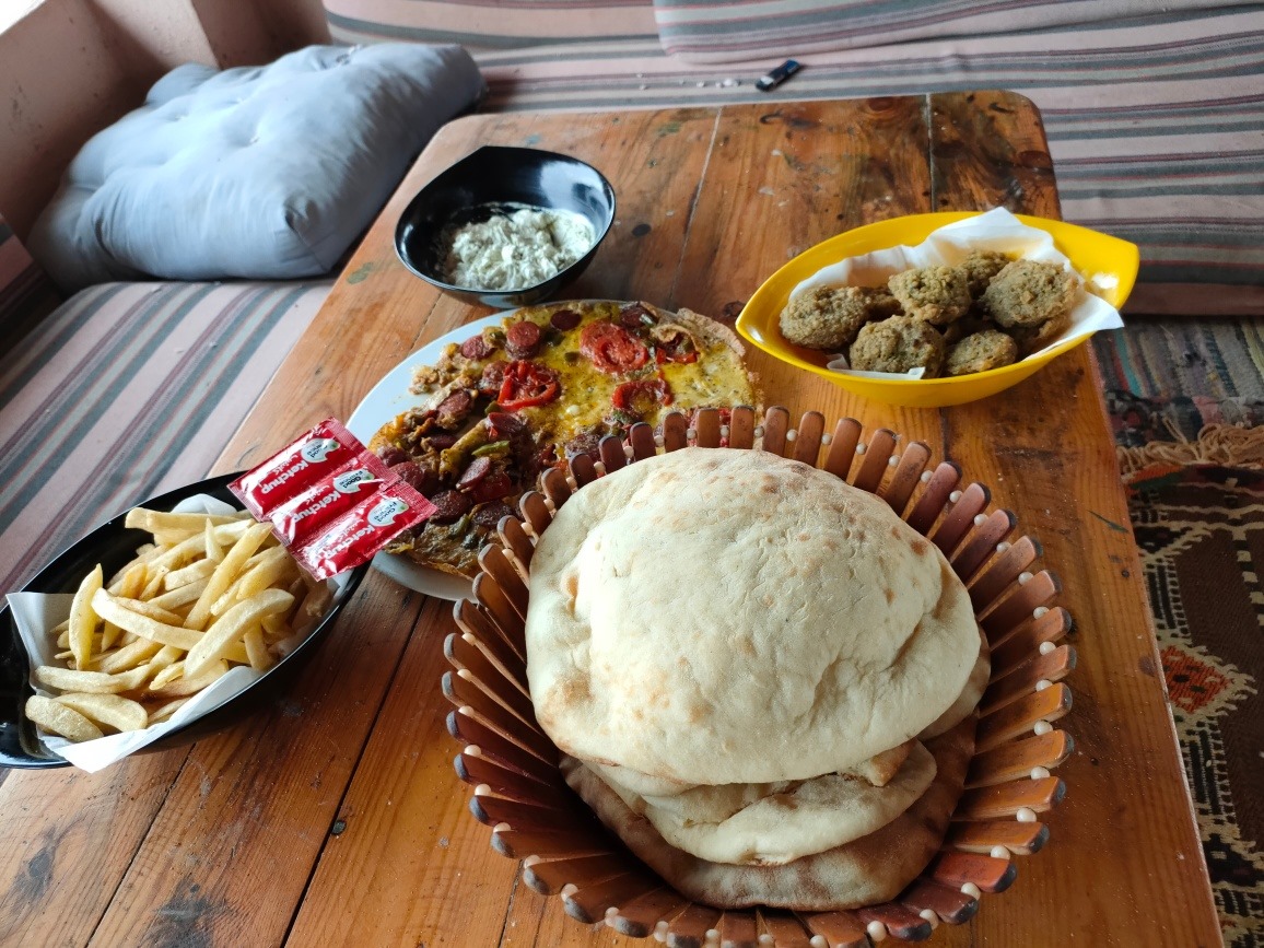 يضم الكامب مطعمًا يقدم وجبات بسيطة، ويُعد اختيارًا مناسبًا للشباب والأزواج